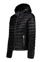 Introducing the CIESSE PIUMINI CARRIE Down Jacket for women. This black jacket is made from 100% nylon fabric and features a regular fit. The lining is made from 100% polyester, while the filling is a combination of 90% down and 10% feathers. Part of the Spring Collection, this hooded jacket is crafted with genuine 800 fill power down for ultimate warmth and comfort. It's a new, contemporary, and stylish version of our best-selling jacket.