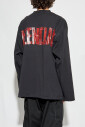 We present the LONG-SLEEVED T-SHIRT, epitomizing modern elegance and the visionary approach to fashion that BALENCIAGA is renowned for. This black T-shirt, crafted from the highest quality cotton, features a loose, oversized fit that ensures freedom and wearing comfort. The crew neck harmoniously blends with the raw edge finishes, giving the whole a vintage effect. The bold red print on the back, serving as the main decorative element, draws attention and emphasizes the unique character of this design. WHY SHOULD YOU BUY THIS PRODUCT? * Exclusive fashion collection from the prestigious fashion house Balenciaga. * High-quality cotton, ensuring wearing comfort. * Trendy oversized fit, ideal for various occasions. * Bold print, adding character and uniqueness. Model`s Measurements Height: 185cm Chest: 92cm Waist: 74cm Hips: 91cm Model is wearing size: 4