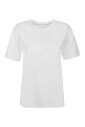 Elevate your casual wardrobe with this T by Alexander Wang Puff Logo Bound Neck Essential T-Shirt for women. The white puff logo and bound neck add a touch of sophistication to this classic piece, making it perfect for any casual occasion.